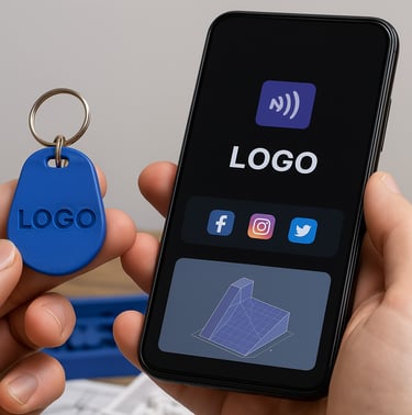 Ademas de que podemos incorporar tecnologías adicionales cómo "NFC" para que tu llavero tenga toda la información que deseas compartir con tu cliente.